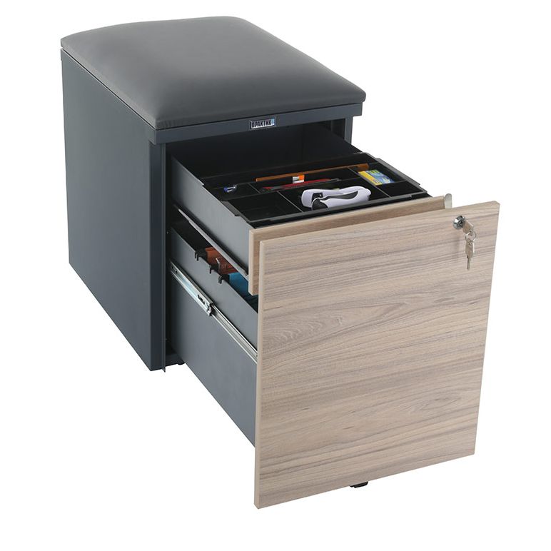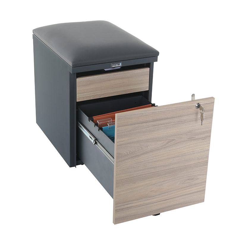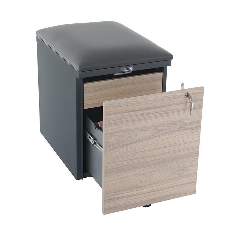 Тумба офисная с пуфом Практикант 2 ящика (антрацит/вяз)